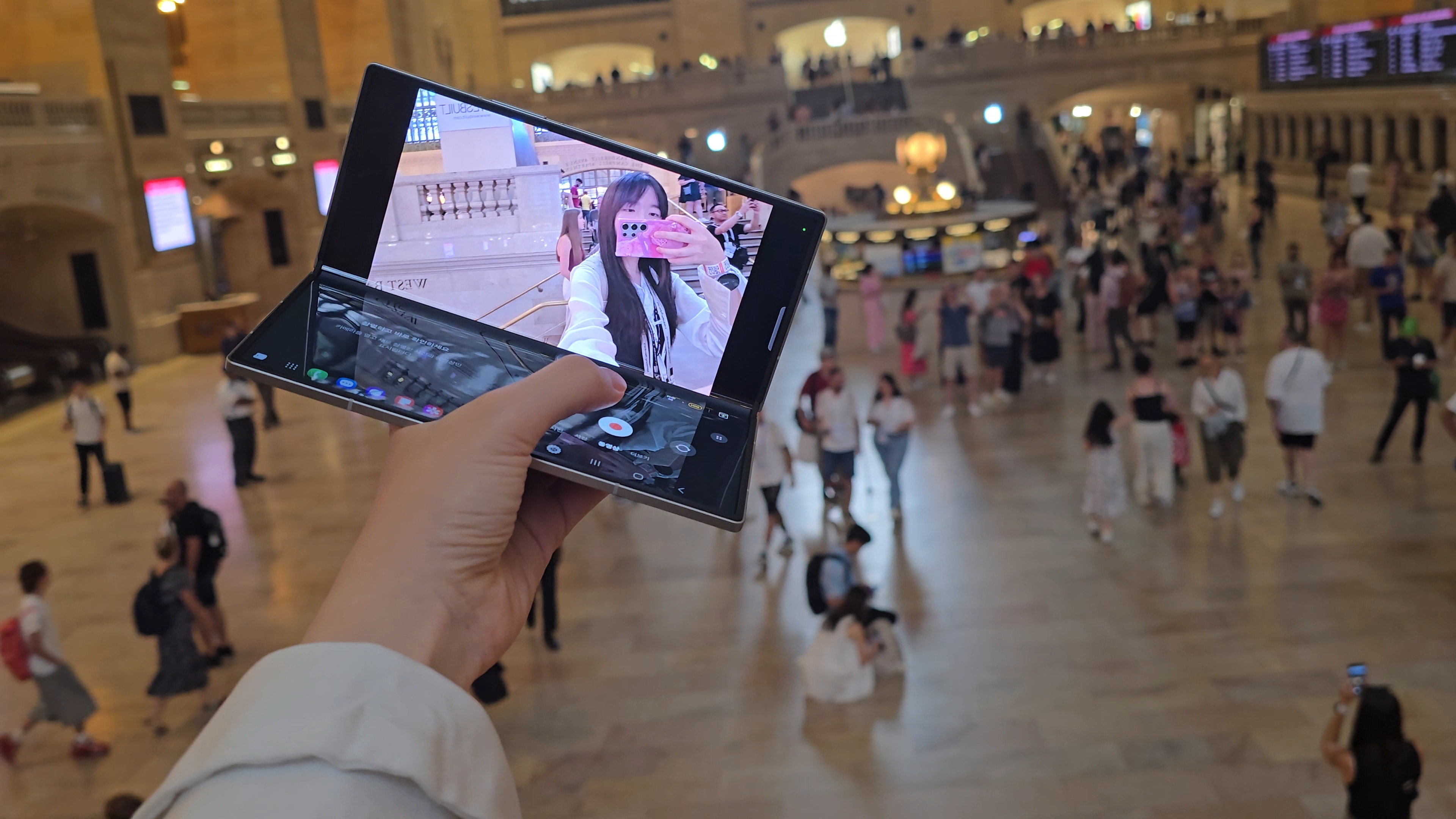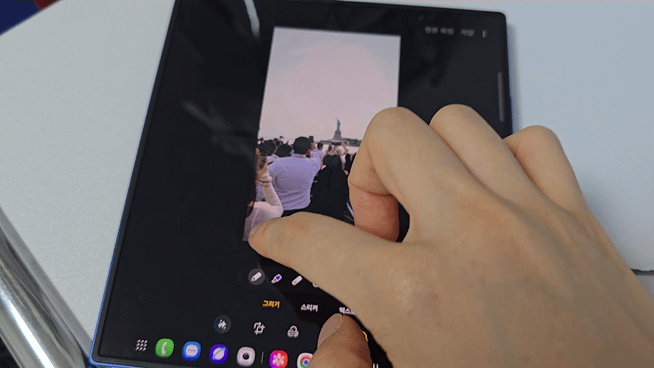 예쁜 실버색 갤럭시Z폴드7을 들고