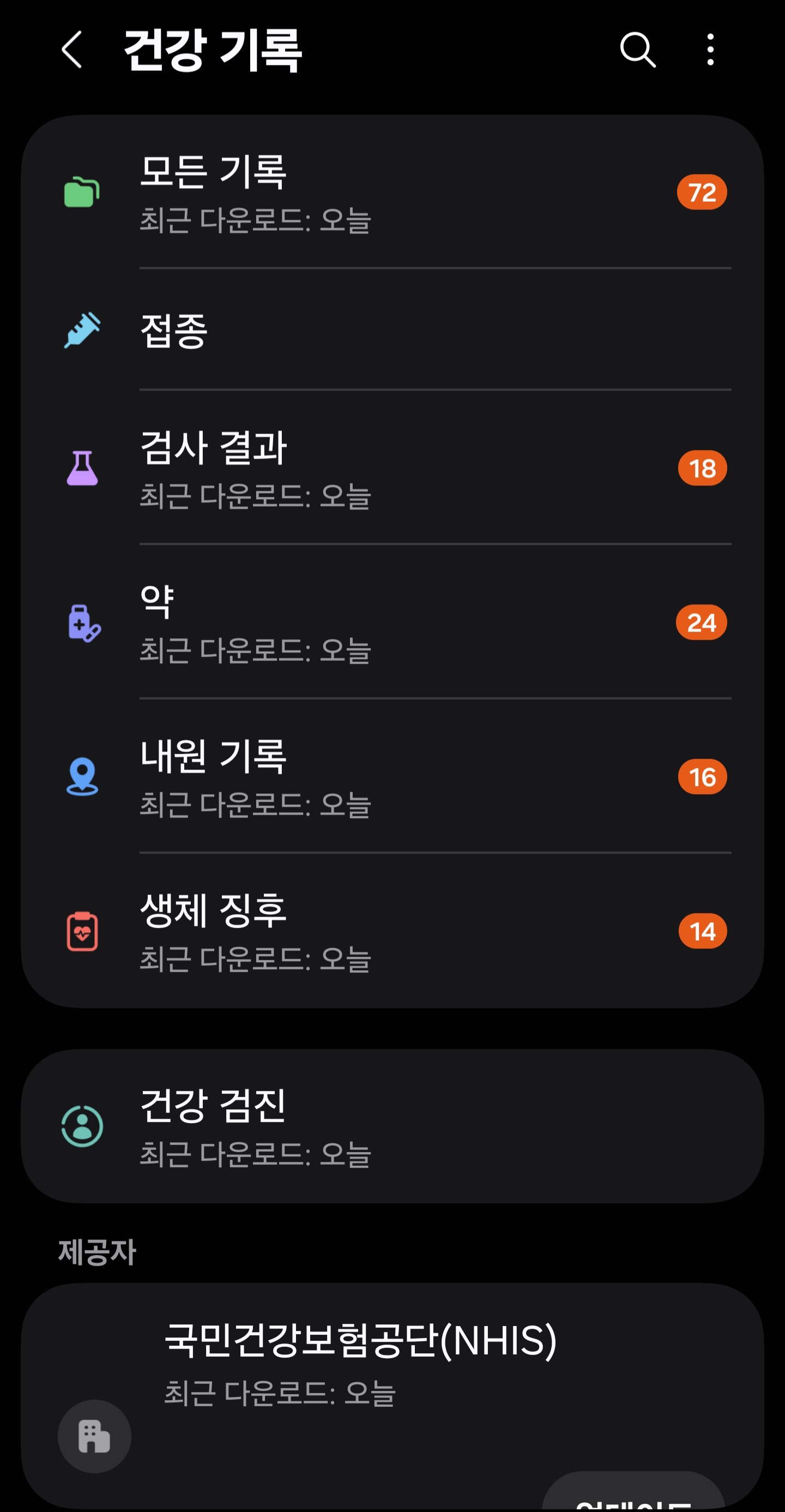 #약 #건강검진 #접종 #검사결과 #내원기록 #생체징후 #국민건강보험공단 #질병관리청 #건강보험공단